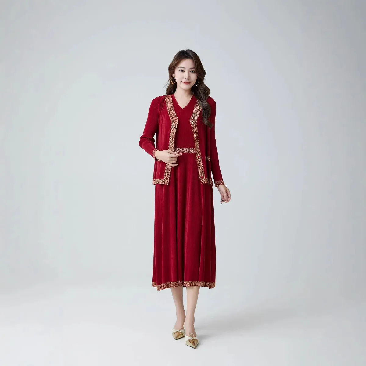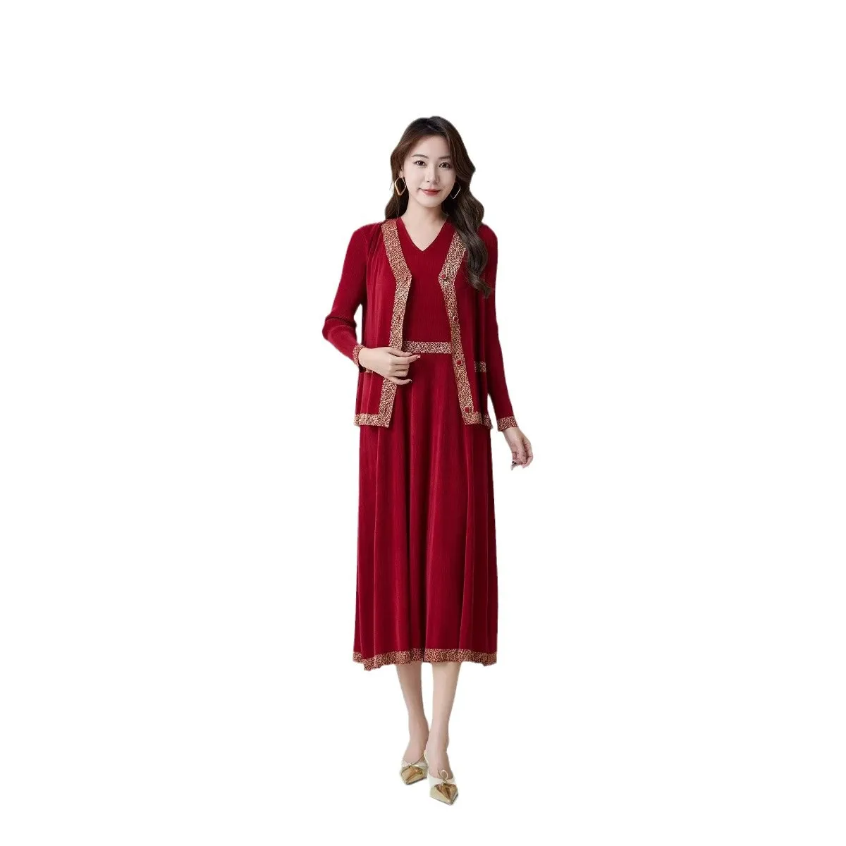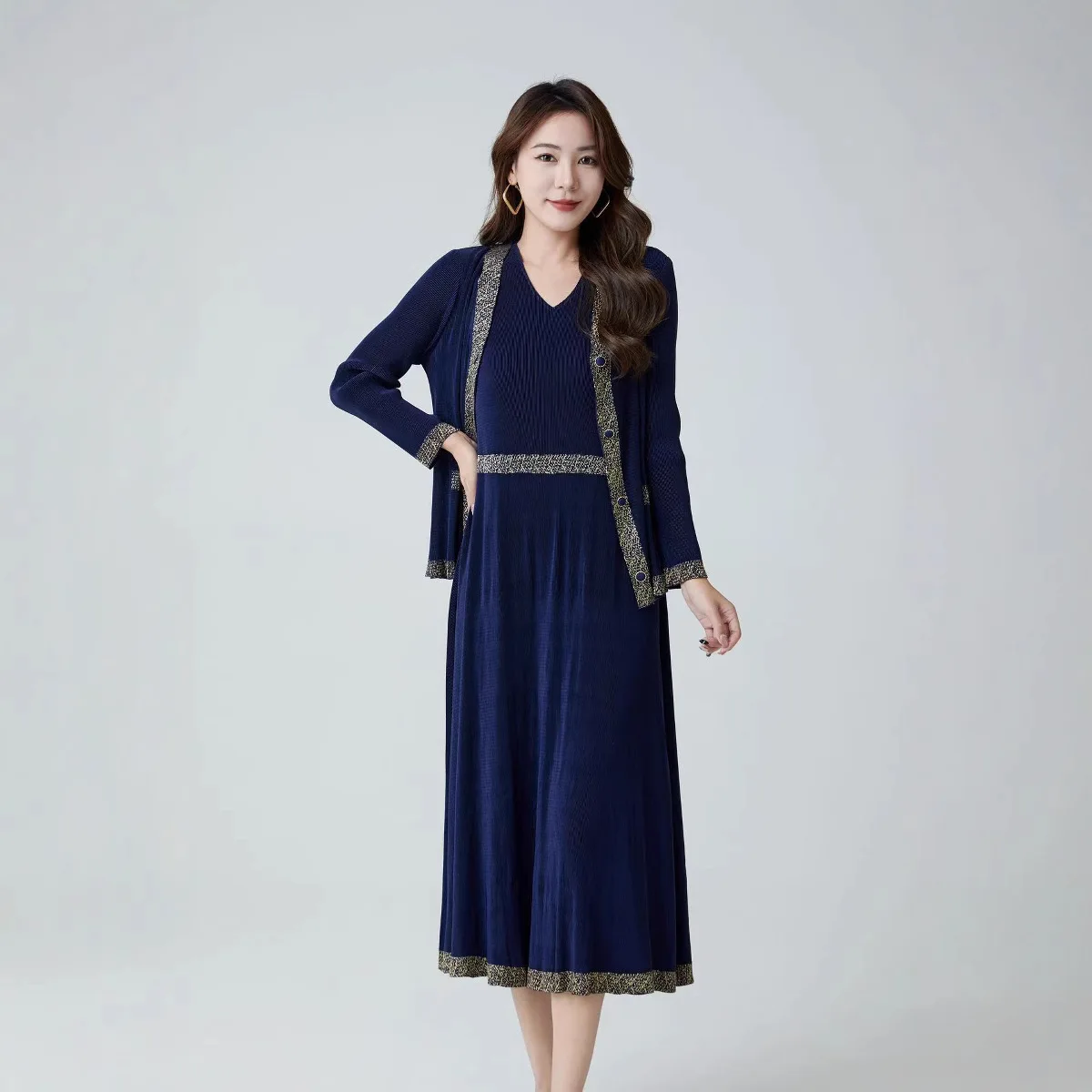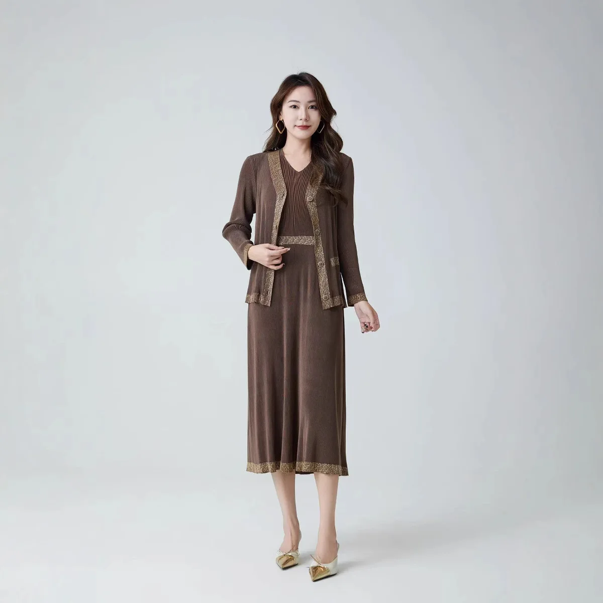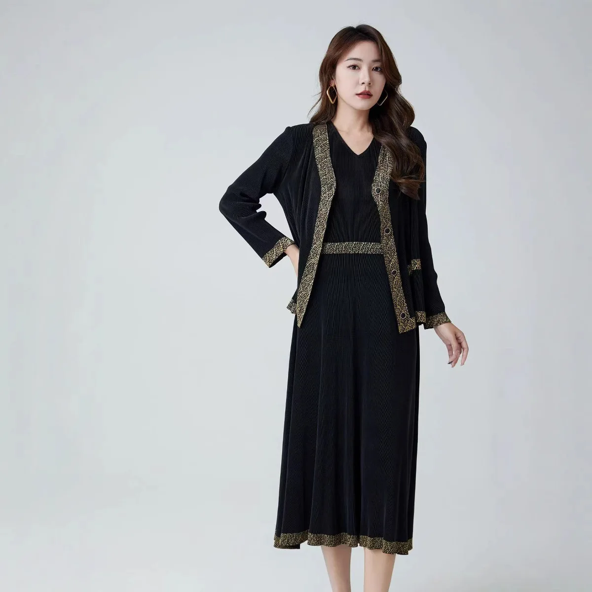 2025 Summer High-End Mid-Length Joker Suit Casual New Pleated Fashion Two-Piece Set-Solid Long Tops Shorts Outfits Factory